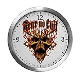 Product Number: 030-544883749 With a stylish aluminum body and sturdy glass face, this Modern Wall Clock is both great-looking and durable. Measuring 14" in diameter, it's perfect for the office, kitchen, TV room, or wherever you need that modern touch. Featuring Quartz movement for true accuracy, it operates on a single "AA" battery (included). * Measures 14" in diameter * Quartz movement * Aluminum body * Glass face * Runs on single "AA" battery (included).../ Modern Wall Clock Fear No Evil Flaming Skull - Harley Davidson Gear / Clock Wall